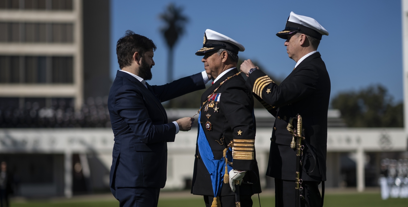 El Presidente Gabriel Boric encabezó esta mañana en la Escuela Naval en Valparaíso la ceremonia de cambio de mando de la Armada de Chile, ocasión en la que el Almirante Fernando Cabrera asumió como Comandante en Jefe de la institución, sucediendo en el cargo al Almirante Juan Andrés de la Maza.