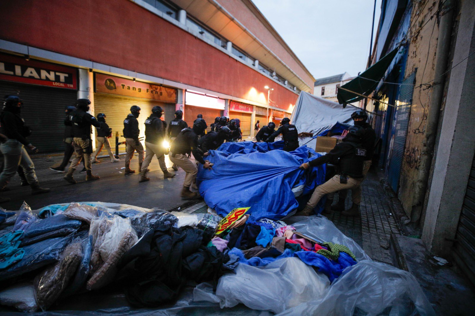 El ministro de Seguridad, Luis Cordero, anunció que los servicios de Aduanas y el SII ayudarán en el plan de recuperación del Barrio Meiggs que hoy se dio inició con el desalojo de los “toldos azules”.