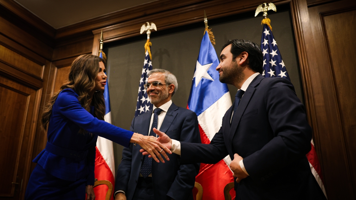 En su primera actividad oficial en nuestro país, la Secretaria de Seguridad Nacional de los Estados Unidos, Kristi Noem, encabezó esta mañana junto con los ministros de Seguridad Pública, Luis Cordero, Justicia, Jaime Gajardo, una reunión ampliada de delegaciones de ambos países en torno a seguridad fronteriza, tras la cual se firmó una carta de intenciones sobre esta materia, de especial interés para el gobierno de Donald Trump y enmarcada en los rumores que amenazan la mantención del beneficio de Visa Waiver para que ciudadanos chilenos puedan visitar la nación norteamericana.