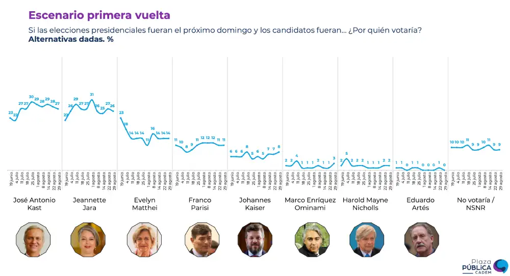 En la noche de este domingo ha publicado su encuesta semanal CADEM y nuevamente trae malas noticias para la candidata de Chile Vamos, Evelyn Matthei, que en Punta Arenas dijo «Pasaré a la segunda vuelta y la voy a ganar», lo que ya pareciera ser una mera ilusión de la ex ministra y ex alcaldesa.