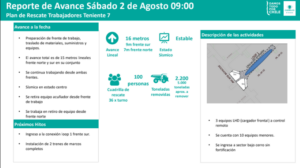 El informe señala que ya se ha avanzado 16 metros hacia el lugar donde deberían permanecer los cinco trabajadores atrapados.