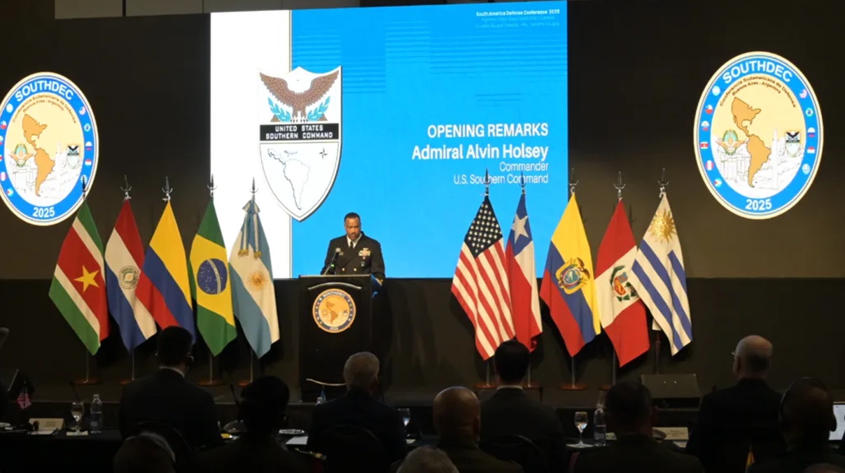 En la inauguración de la Conferencia Sudamericana de Defensa (SOUTHDEC) en Buenos Aires, el jefe del Comando Sur de Estados Unidos, almirante Alvin Holsey, advirtió sobre el peligro de la penetración en la región por parte de China, poniendo énfasis en la protección del Estrecho de Magallanes y el Paso Drake.