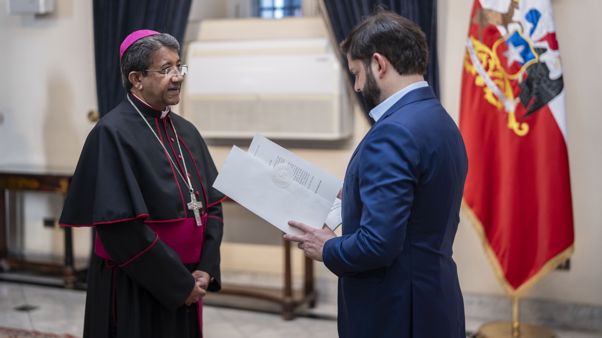 Acompañado por el canciller Alberto van Klaveren, el Mandatario recibió en el Palacio de La Moneda las Cartas Credenciales de los representantes diplomáticos de República Dominicana, Juan Alberto Cohen; Santa Sede, Monseñor Kurian Mathew Vayalunkal; Indonesia, Vedi Kurnia Buana; España, Laura Oroz Ulibarri; y Suecia, Eva Sofía Karlberg.