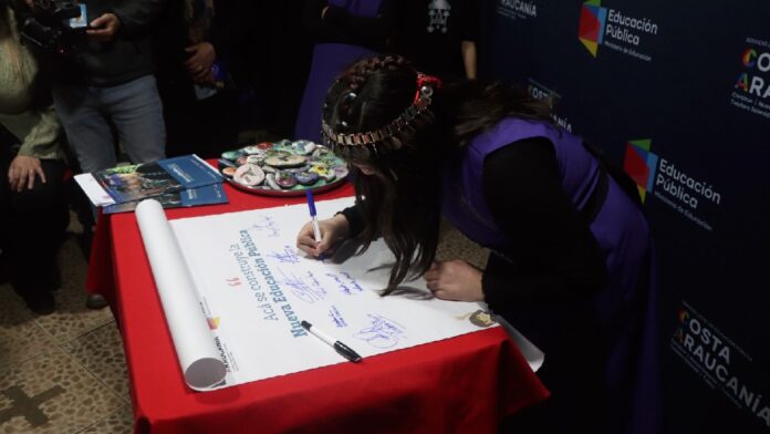 La presidenta del CEAL, Ahinoa Collilen, expresó que “me parece bien este Proyecto porque ahora nuestra escuela estará mejor cuidada, tendrá mejores arreglos y estará más bonita. Yo canté en el número artístico porque cantan en mapudungun y nuestras raíces son mapuches, entonces decidí cantar”.