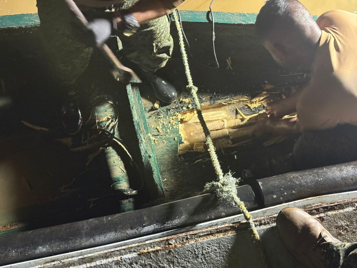 En el interior de las motonaves se hallaron compartimientos ocultos con doble fondo, que contenían 117 costales con 3.504 paquetes rectangulares, cuyas características de color y olor eran similares a las de la marihuana.