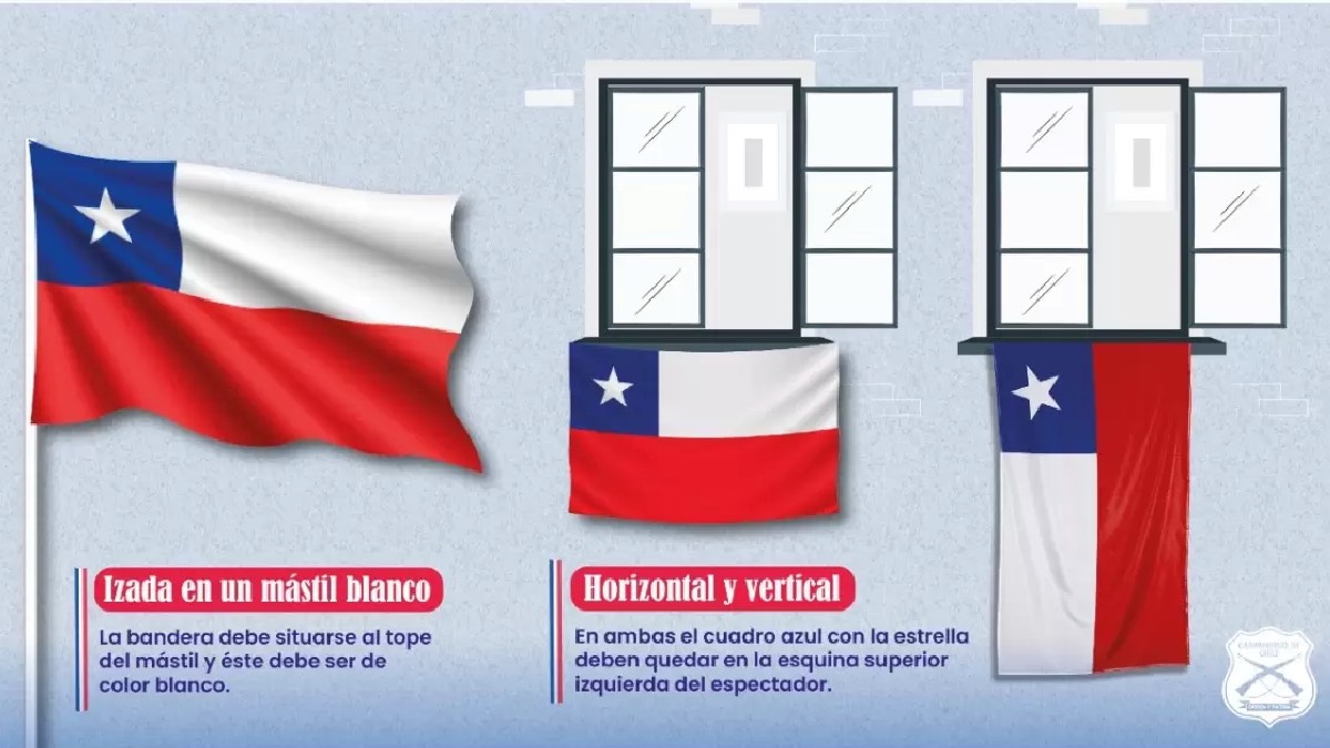 La Ley 20.537 establece que es obligatorio exhibir la bandera los días 18 y 19 de septiembre en casas, edificios y condominios. En el caso de los departamentos, no será necesario que cada vecino la instale si el edificio ya lo hizo en un lugar visible.