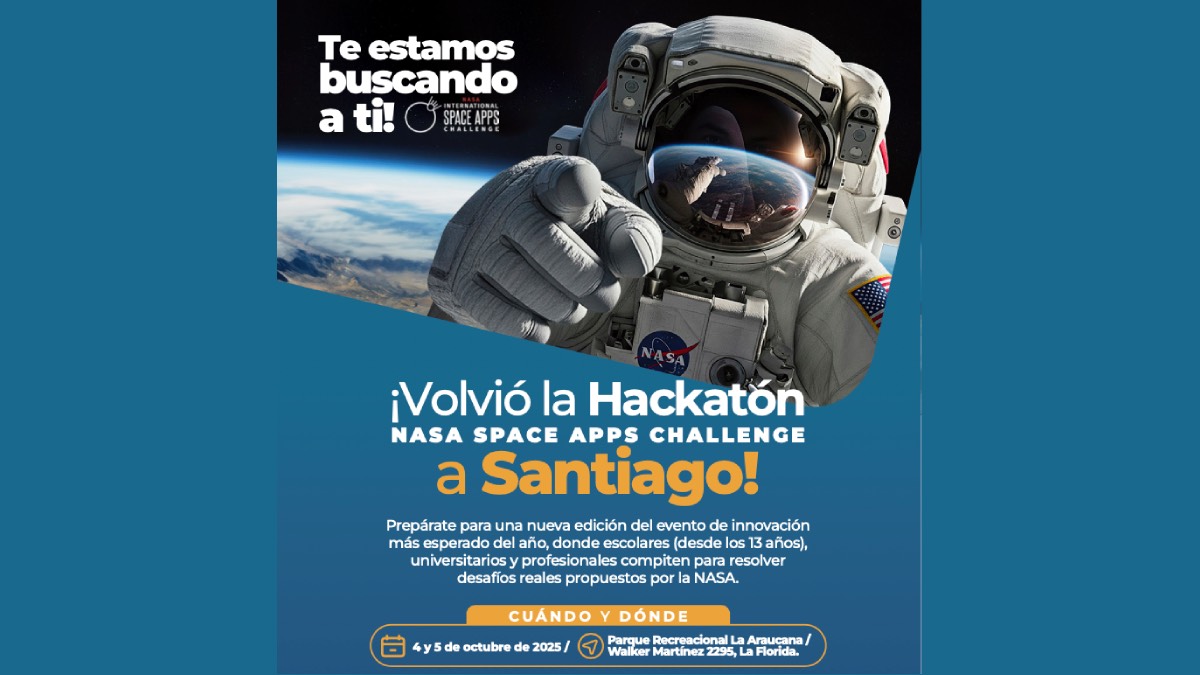 La actividad, liderada por Caja La Araucana en Chile, congregará a cientos de jóvenes mayores de 13 años, estudiantes de pregrado, hasta profesionales de diversas disciplinas del país para resolver 18 desafíos reales de la NASA, utilizando datos e imágenes proporcionadas por la agencia espacial. Las postulaciones ya están abiertas y los interesados podrán inscribirse hasta el 03 de octubre.