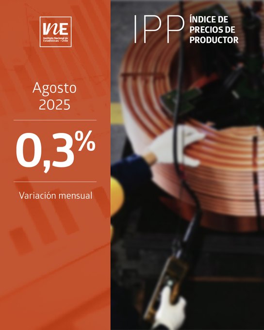 El Índice de Precios de Productor de Industrias (agregación de los sectores manufactura, minería y electricidad, gas y agua) registró una variación mensual de 0,3% en agosto.