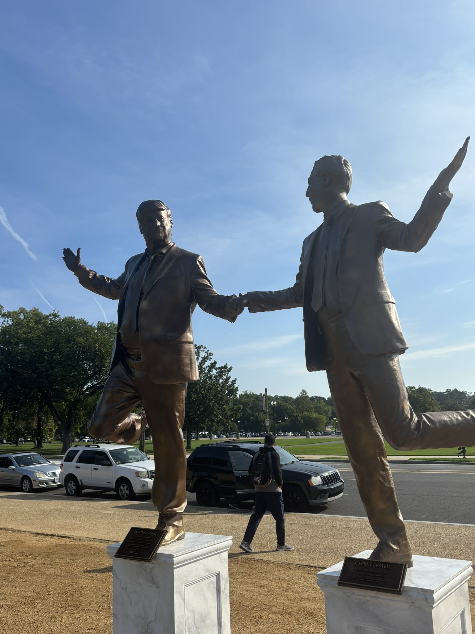 Desconocidos instalaron una estatua del presidente de EEUU, Donald Trump, y y el pedófilo Jeffrey Epstein frente al Capitolio.