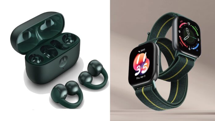 Motorola anuncia la llegada a Chile de los nuevos moto buds loop, los primeros auriculares abiertos de la marca con tecnología Sound by Bose y el nuevo moto watch fit, ambos en el color Pantone® Trekking Green.