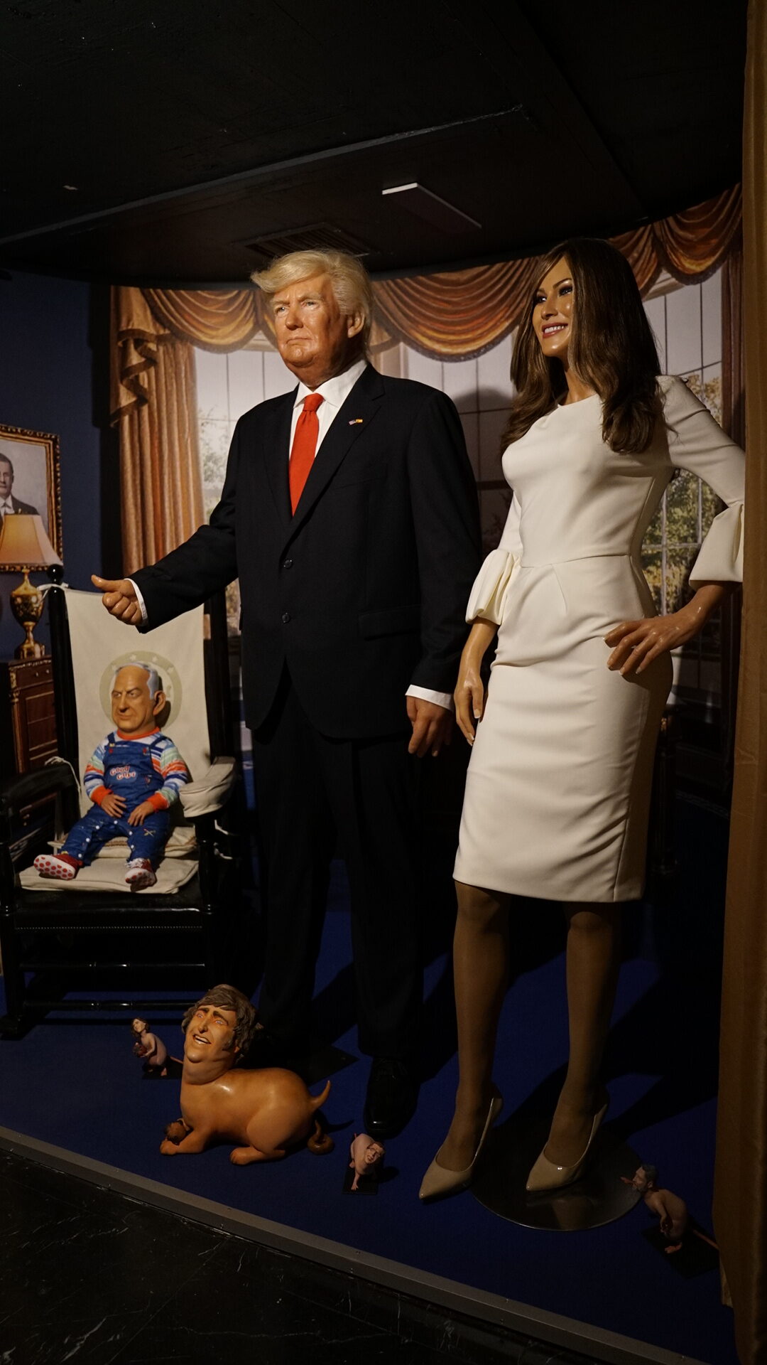 El artista Nicolás Miranda sorprendió con una nueva intervención en la reproducción del Despacho Oval de la Casa Blanca en el Museo de Cera de Madrid. En su acción el creador chileno insertó esculturas de Benjamín Netanyahu, Javier Milei, Santiago Abascal, Jose Luis Martínez-Almeida e Isabel Díaz Ayuso, bajo la mirada de la figura de Donald Trump, configurando una escena de crítica política en pleno espacio turístico.