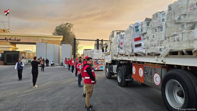 Cientos de camiones con ayuda humanitaria comenzaron a entrar este domingo en la Franja de Gaza desde Egipto de acuerdo al plan de alto al fuego entre Israel y Hamás, alcanzado el jueves pasado.