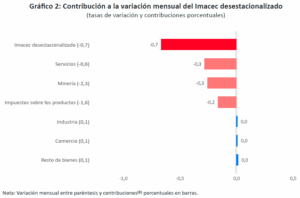 En tanto, la caída del Imacec en términos desestacionalizados fue determinada por los servicios y la minería.