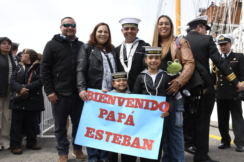 Cerca de un millar de personas entre familiares y amigos llegaron este viernes hasta el Molo de Abrigo del puerto de Valparaíso para dar la bienvenida a la tripulación del Buque Escuela “Esmeralda”, que retornó de su extensa navegación de medio año por el Asia-Pacífico.