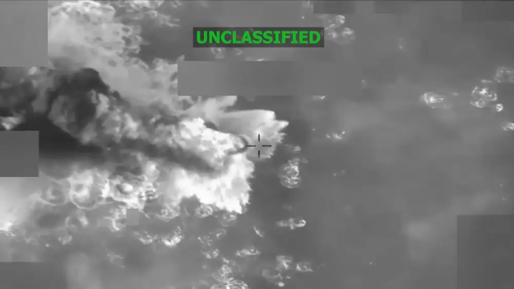 La publicación del Comando Sur en X muestra un barco acelerando sobre el agua antes de quedar envuelto en llamas. El comando dijo que la inteligencia confirmó que la embarcación “estaba involucrada en el contrabando ilícito de narcóticos, transitando por una ruta conocida de narcotráfico y transportando narcóticos”.