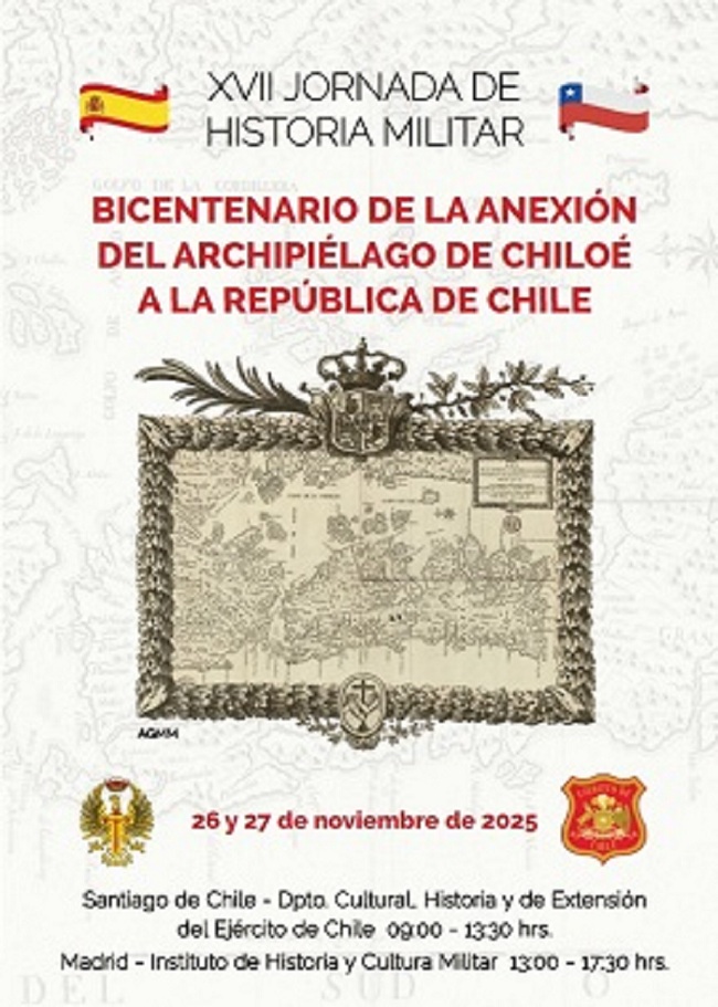 El Ejército de Chile junto al Instituto de Historia y Cultura Militar del Ejército de Tierra de España, están organizando las XVII Jornadas de Historia Militar que se enmarca dentro de la conmemoración de los 200 años de anexión del archipiélago de Chiloé a la República de Chile.