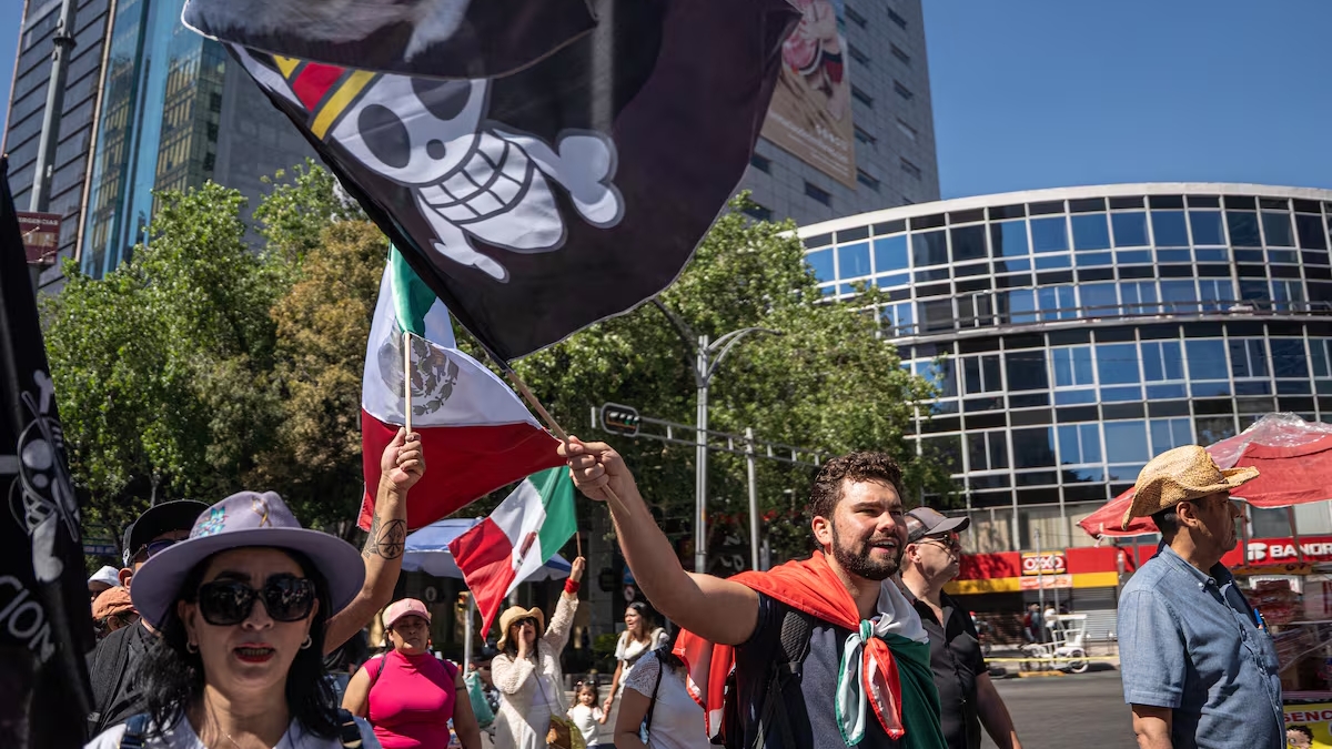 El emblema que los movilizados han pedido llevar no es casual: la bandera pirata de los “Sombrero de Paja” del animé One Piece, haciéndose eco de otras marchas similares alrededor del mundo