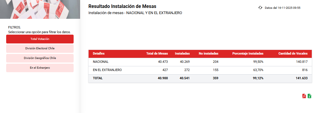 El Servel informó que el 99,50% de las mesas se encuentra constituidas a lo largo del país para las elecciones presidenciales y parlamentarias 2025.