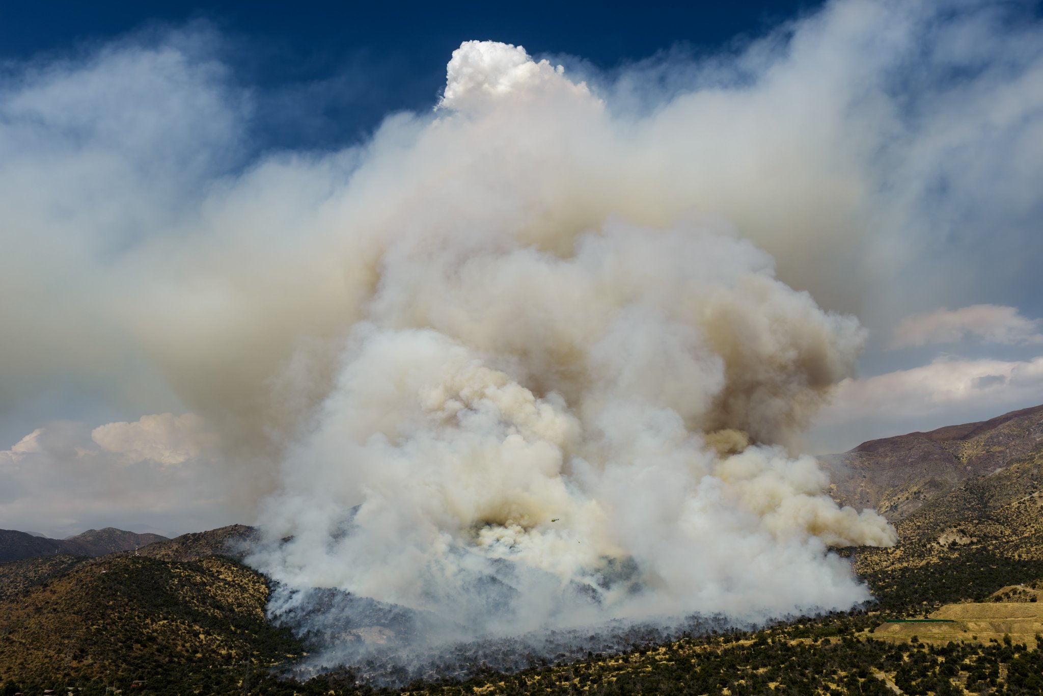 El Senapred declaró alerta amarilla para la comuna de Las Condes por un incendio forestal que ya ha consumido 80 hectáreas de vegetación.