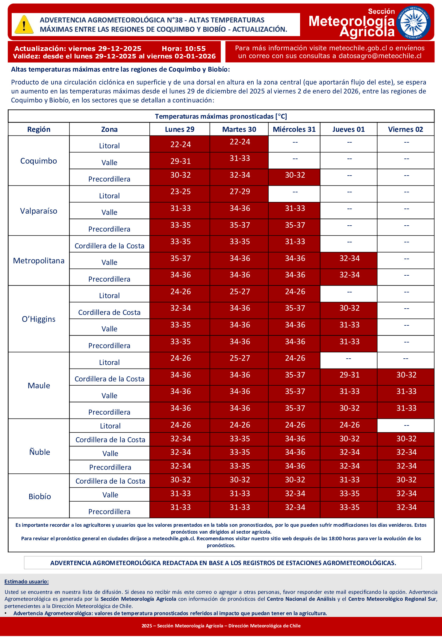 DMC actualiza la advertencia por altas temperaturas desde Coquimbo a Biobío