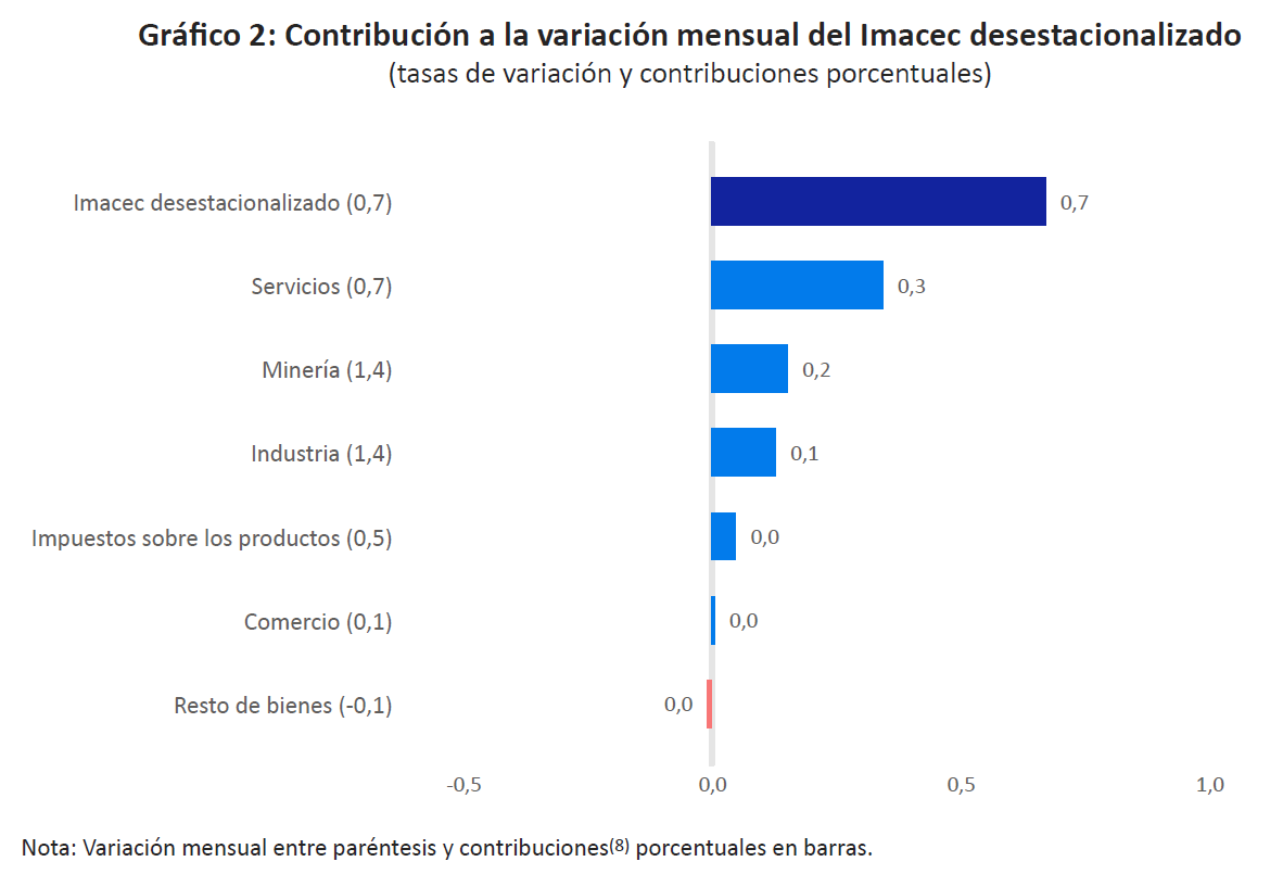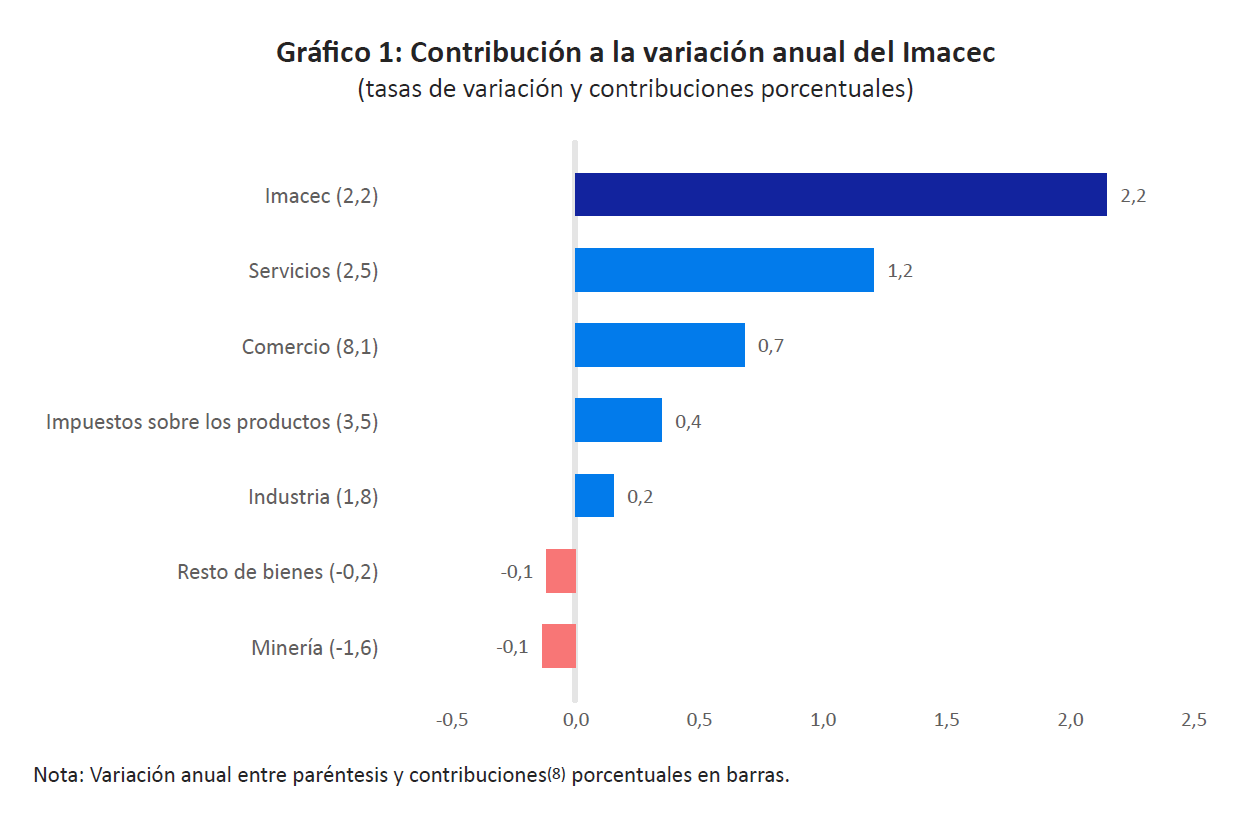 El resultado del Imacec se explicó principalmente por el desempeño de los servicios y del comercio.