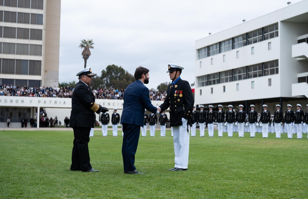 El Brigadier Mayor Zúñiga, reconocido además con la primera antigüedad de su promoción, recibió el Gran Premio Armada de Chile, la distinción del Ministerio de Educación y un reconocimiento otorgado por la Armada Española, entregado por la embajadora de España en Chile, Laura Oroz, junto al Director de Enseñanza Naval de la Armada española, Contraalmirante Ramón Fernández.