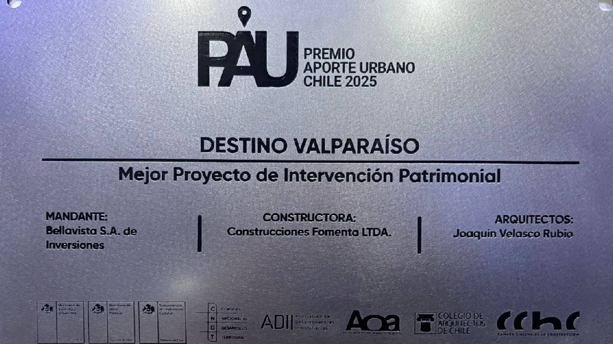 Por su impacto en la revitalización urbana de la ciudad y su puesta en valor del patrimonio histórico, en línea con el compromiso de la Cámara Chilena de la Construcción de impulsar iniciativas que combinen identidad, buen diseño urbano y desarrollo sostenible, el proyecto Destino Valparaíso se convirtió en el ganador del Premio Aporte Urbano PAU 2025, en la categoría de Mejor Proyecto de Intervención Patrimonial, uno de los principales reconocimientos nacionales a iniciativas que mejoran nuestras ciudades.