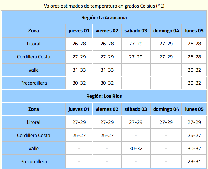 La Dirección Meteorológica (DMC) emitió un aviso de altas temperaturas para cuatro regiones del sur del país y que podrían llegar hasta los 33 grados.