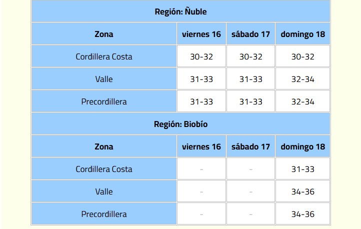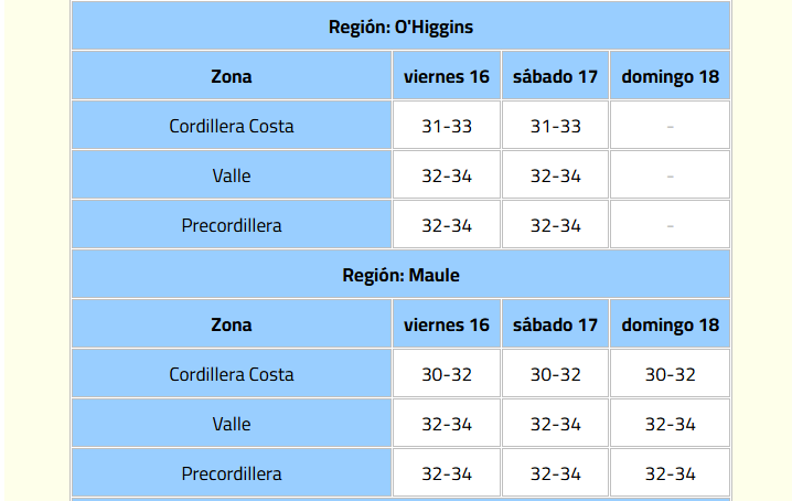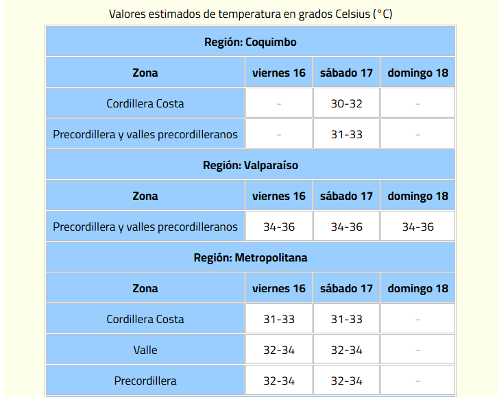 La condición se produce por una dorsal en altura y las regiones que afectará son Coquimbo, Valparaíso, Metropolitana, O’Higgins, Maule, Ñuble y Biobío.