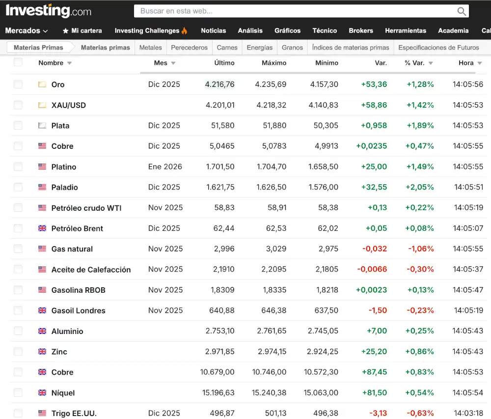 Precios al cierre de la nota este viernes 2 de enero 2026.