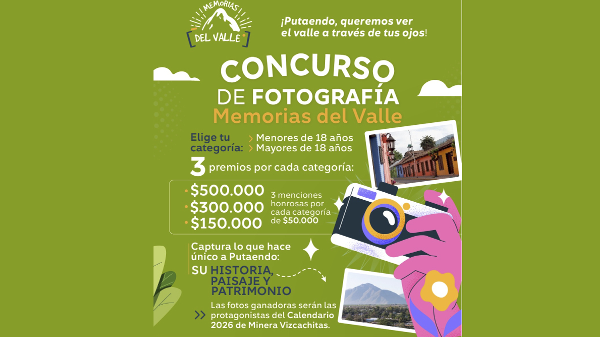 Hasta el 15 de enero estará abierta la covocatoria para retratar la belleza del Valle de Putaendo, sus tradiciones, naturaleza y todo aquello que hace único a este lugar de Chile, en el primer concurso de fotografía “Memorias del Valle”, organizado por Minera Vizcachitas y cuyos ganadores serán elegidos por votación popular a través de redes sociales.
