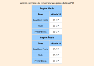La Dirección Meteorológica (DMC) emitió una alerta por altas temperaturas extremas en las regiones del Maule y Ñuble, que podrían llegar a los 37 grados.