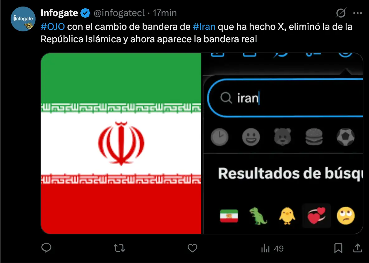 Emoji de X cambia la bandera de Irán y la reemplaza por la bandera de la prerevolución Islámica