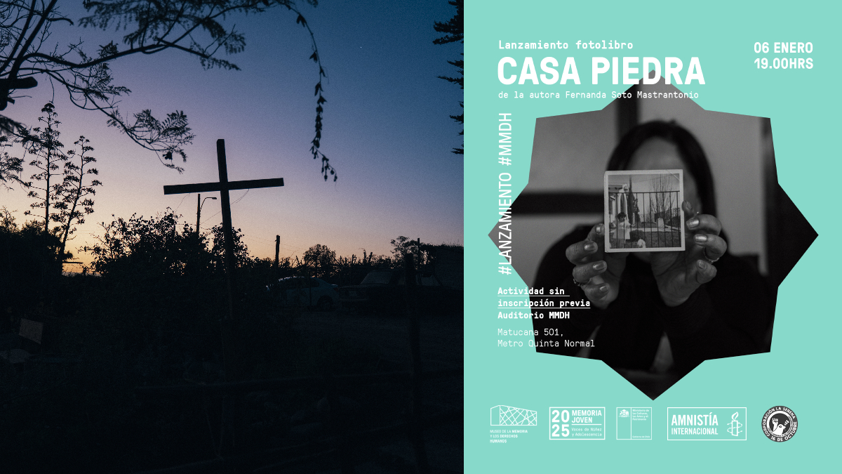 - “Casa Piedra” se llama la publicación que, en modalidad fotolibro, rescata visualmente la historia de este espacio en La Serena que fue lugar de tortura durante la dictadura y que tiene, desde el 2022, declaratoria como sitio de memoria en Chile. Se realizarán dos presentaciones, primero, en el Museo de la Memoria y los Derechos Humanos (Santiago) este 6 de enero del 2026, a las 19:00 horas y, posteriormente, el 23 de enero, a la misma hora, en Casa Espacio Buenos Aires (Valparaíso). Actividades con entrada gratuita.