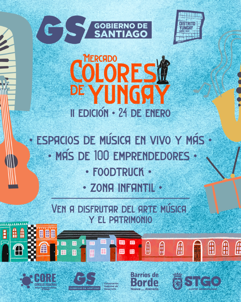 En los próximos días se anunciarán los artistas que formarán parte de la jornada en jornada en @distritoyungay , @mercadocoloresdeyungay , @gobierno.santiago