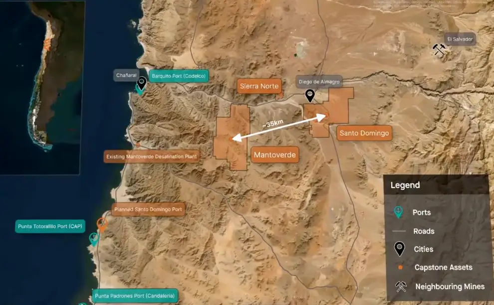 Capstone posee el 70% de Mantoverde, mientras que Mitsubishi Materials posee el 30% restante.