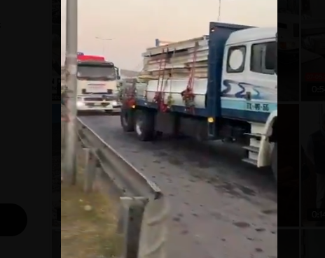Se muestra un video en donde se ven camiones avanzando en caravana con los materiales.