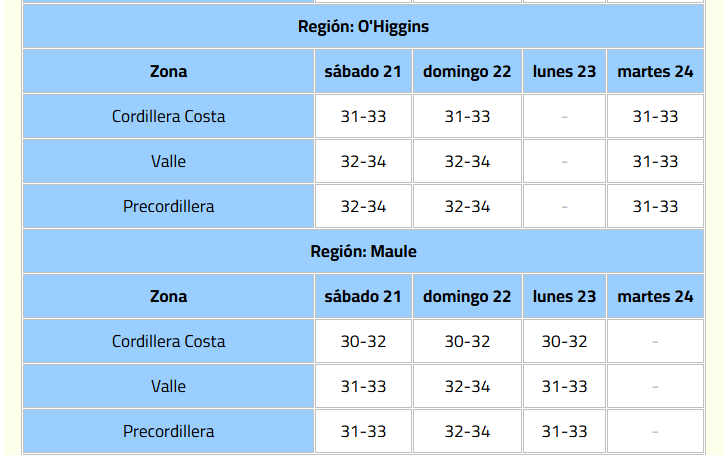 El informe indica que el calor se producirá por una dorsal en altura que afectará las regiones de Valparaíso, Metropolitana, O’Higgins, Maule, Ñuble y Biobío.