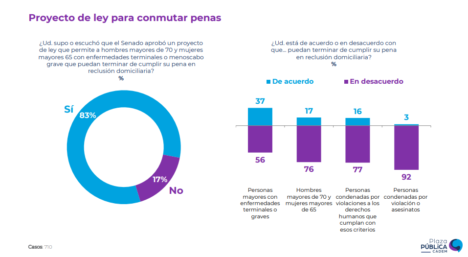 El sondeo señala que el 77% de los entrevistados rechaza que personas condenadas por violaciones a los DDHH se les conmute su pena.