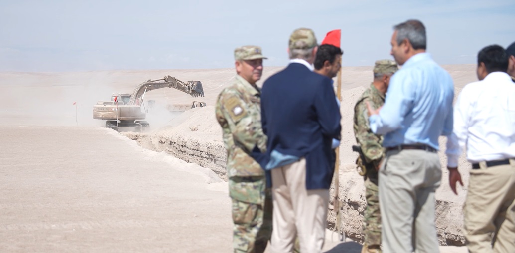 El total de obras de contramovilidad de la frontera norte (Arica, Colchane y otras) será de 500 kilómetros. Actualmente, a la altura de Arica, hay 3 mil metros de zanja, las que en un plazo de 90 días -en una primera etapa-, se deberían expandir a 30 kms.