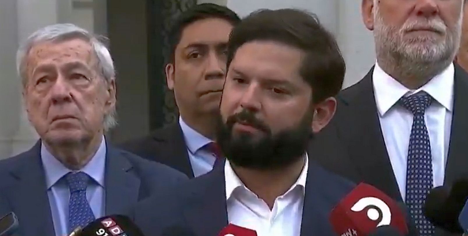Fue así como el Jefe de Estado, tras el intempestivo abandono de Palacio por parte del futuro Presidente, bajó acompañado por los ministros que estarían en la reunión y se dirigió a los medios en el Patio de Los Naranjos.
