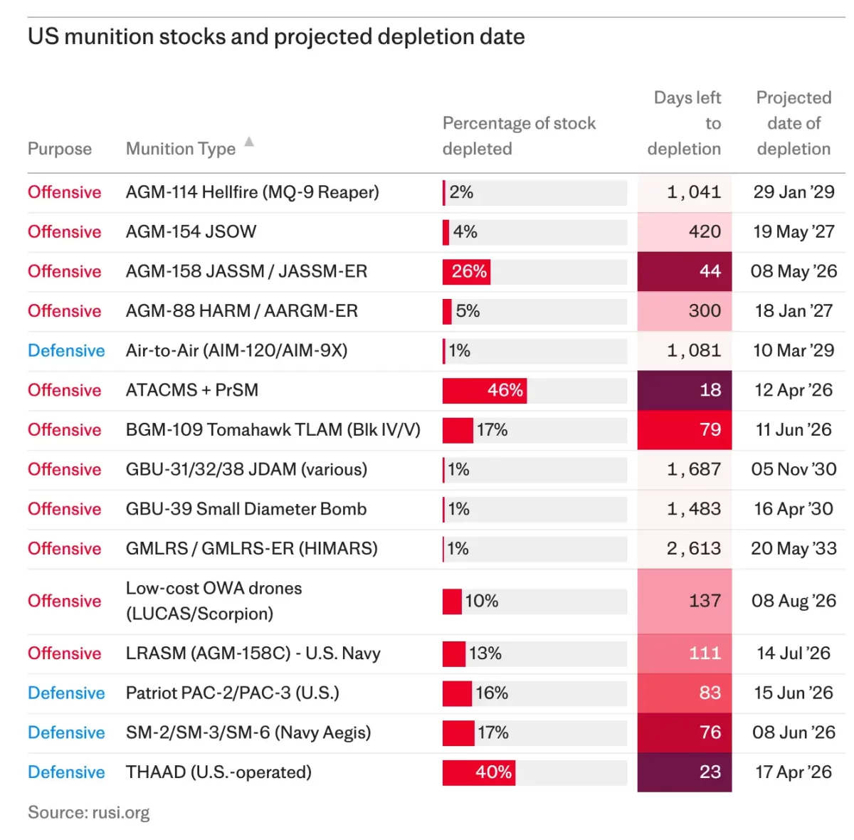 Pero las reservas de armas cruciales se agotarán para entonces si se siguen utilizando al ritmo acelerado al que se han utilizado hasta ahora.